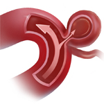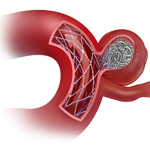 Embolization is a minimally invasive procedure to treat an aneurysm by filling it with material that closes off the sac and reduces the risk of rupturing or rebleeding. It is performed from "within" the artery (endovascular) through a steerable catheter inserted into the blood stream at the groin and guided to the brain. Tiny coils, glue, or mesh stents are used to promote clotting and close off the aneurysm.