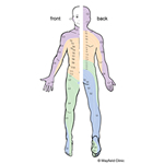 A lumbar sympathetic block is an injection of a local anesthetic that can help relieve chronic leg and foot pain caused by conditions such as complex regional pain syndrome, reflex sympathetic dystrophy, vascular insufficiency, and shingles. Medications are delivered to the sympathetic nerves – a cluster of nerve cell bodies – along the front side of the spine. The goal is to reduce pain so that you can resume normal activities and physical therapy.