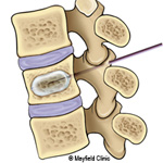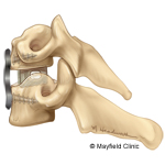 Spinal fusion is a surgery that permanently joins together one or more bony vertebrae of the spine. Abnormal movement of the vertebrae rubbing against one another may result in back, leg, or arm pain. Fusing the vertebrae bones together stabilizes and aligns the spine, maintains the normal disc space between the bones, and prevents further damage to the spinal nerves and cord.