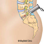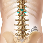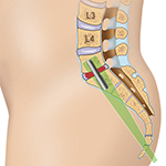 AxiaLIF is a minimally invasive spinal fusion to treat disc problems in the low back. Fusion stabilizes the spine to stop the painful motion and decompress pinched nerves. Through a small incision at the tailbone, the damaged disc is removed and a rod placed to correct the spacing between the vertebrae. During healing, the bones will fuse together. The back muscles are avoided, so recovery is quicker.