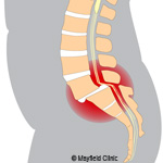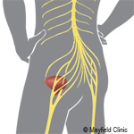 Cauda equina syndrome is a rare condition most often caused by a large disc herniation in the lower back that compresses the nerve roots at the end of the spinal cord. Sudden back pain with numbness in the genital area, difficulty urinating, and weakness in the legs is a medical emergency. Prompt surgery to relieve the pressure may prevent permanent damage and restore bladder and bowel function.
