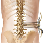 Lateral interbody fusion is a minimally invasive surgery to treat disc problems in the low back. In spinal fusion, two or more bones of the spine are joined to stop painful motion, decompress pinched nerves, and correct scoliosis. Through a small incision at the side of the waist, the disc is removed and a bone graft is inserted to restore the height and relieve nerve pinching. During healing, the bones will fuse together.